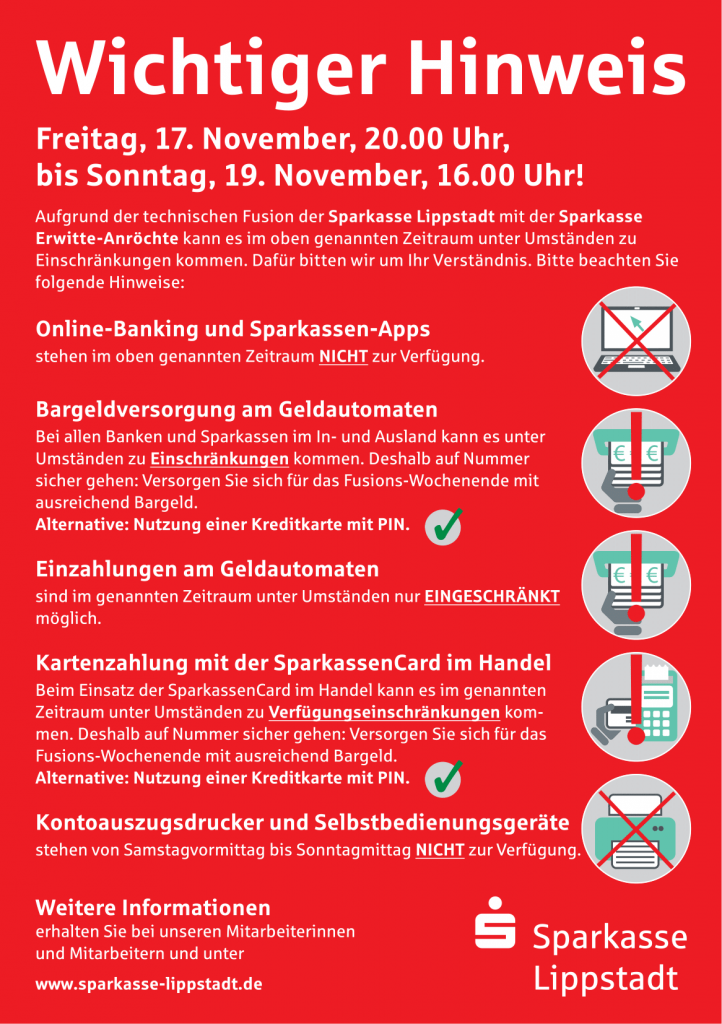Weitere Informationen, besonders für Kunden der ehemaligen Sparkasse Erwitte-Anröchte, zur technischen Fusion finden Sie hier.